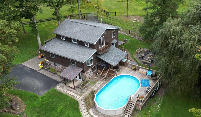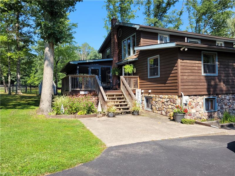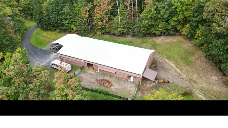 One-of-a-kind HORSE FARM country estate on 9.99 + acres less than a mile from Huntingdon. Grow your own beauties in the raised beds in this backyard Eden, complete with heated swimming pool, hot tub, outdoor shower and firepit. After a nice swim, enjoy your horses in this 120x60 six stall horse barn with indoor arena. All new fencing. Property also has a detached oversized 2 car garage 28x32 with workshop and a second story finished office/studio, which could easily be an apartment. The 2800 sq ft house has 3 bedrooms and 3 bathrooms & has been completely remodeled. New kitchen appliances.