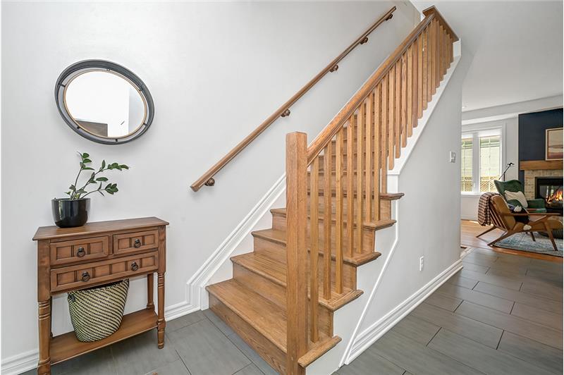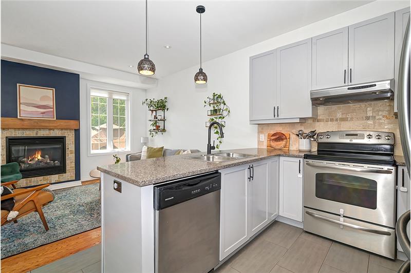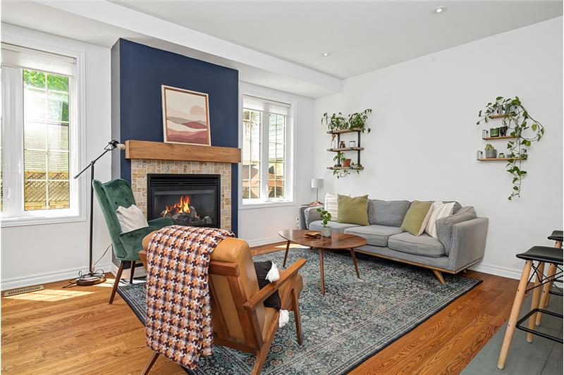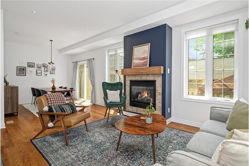 Beautiful freehold end-unit townhome with 3 beds, 4 baths, open-concept layout, hardwood floors, upgraded kitchen, gas fireplace, landscaped yard, finished basement, and prime central location.