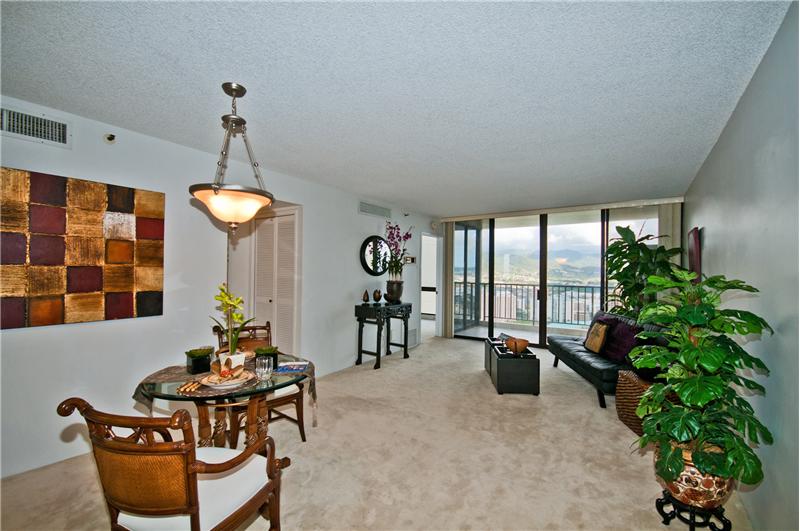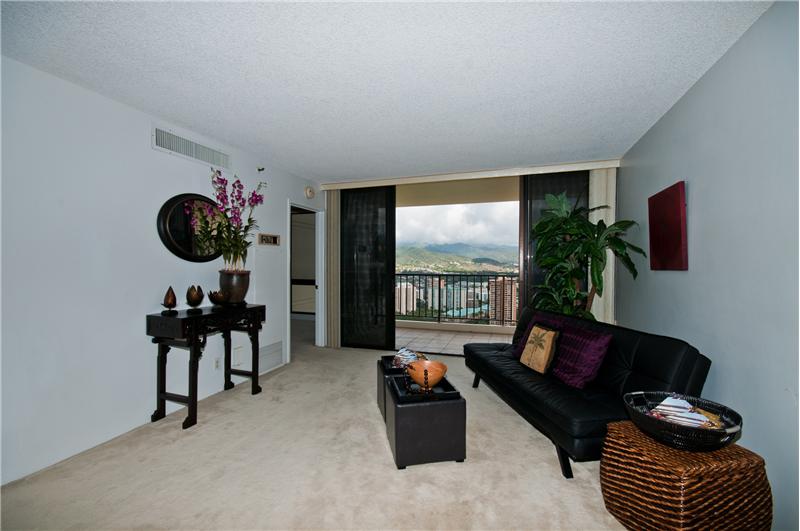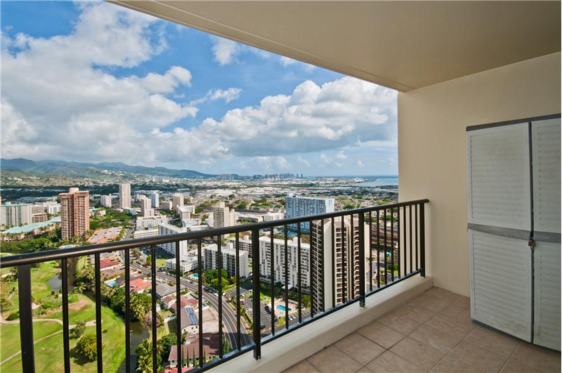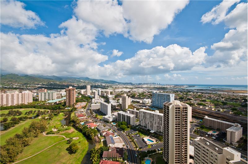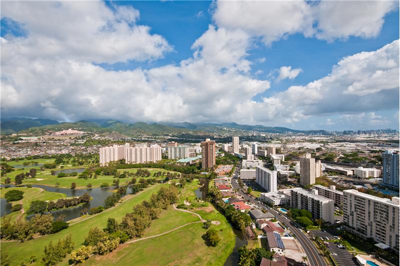 SOLD - Desirable high floor unit with panoramic views of Diamond Head, Ocean, Golf Course, City and Mountains. Upgraded baths and kitchen fitted with sub zero refrigerator. This unit comes with 2 covered parking, great amenities. Close to shopping center, airport, hospital, schools and freeway.