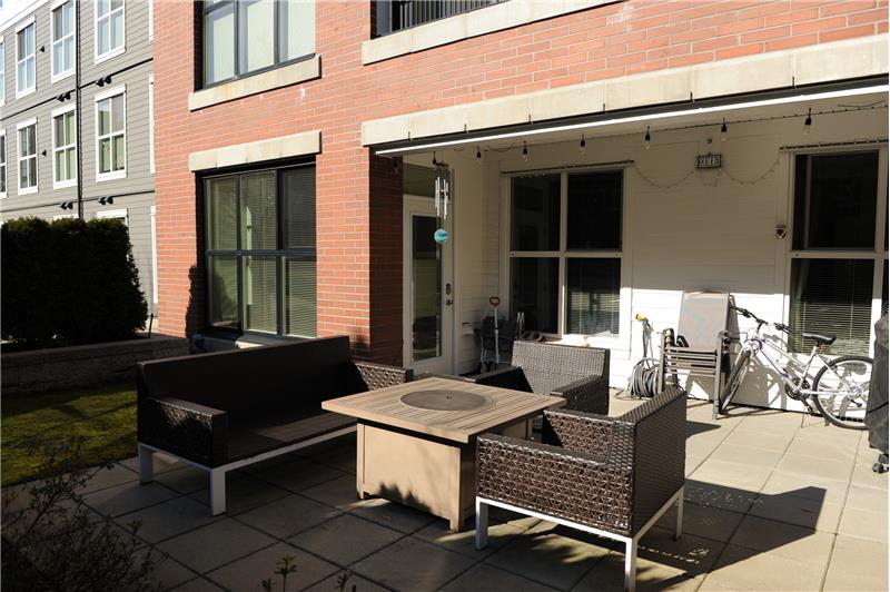 Union Park 2 bed, Den, 2 bath unit on the ground floor. kitchen with Island featuring engineered stone countertops, stainless steel appliances, gas stove. Primary Bdrm with walk-in-closet, Ensuite with spa like shower. 2 parking spots. Large covered and open patio with a yard. Clubhouse has an outdoor pool, fitness center, indoor basketball court, pool table, music room, courtyard with BBQs and picnic areas, a playground. A must see.