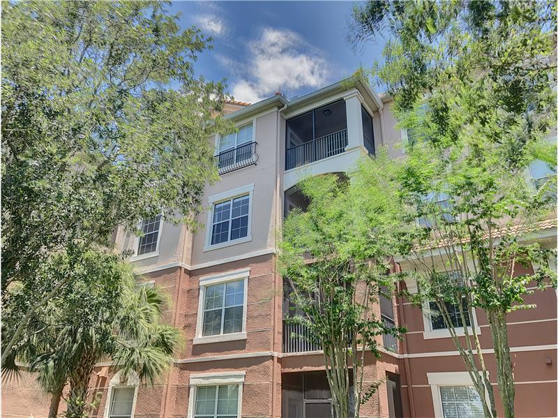 Exceptional condominium unit for sale on 4th floor, over-looking a pond and the Omni Hotel. This is a luxury 3 bedroom 2 bath condo in the gated golf community of BellaTrae. Floor plan includes 3 bedrooms, with a spacious living room/dining room combo, large walk in closet, screened balcony lanai and one assigned carport with one storage closet. Full size washer/dryer and all appliances convey. The building has elevators. You will love the amenities of Bella Trae with gated entry, large 12,000 square foot clubhouse, fitness center, and heated pool and spa.