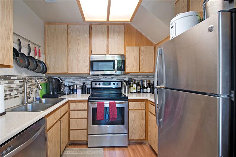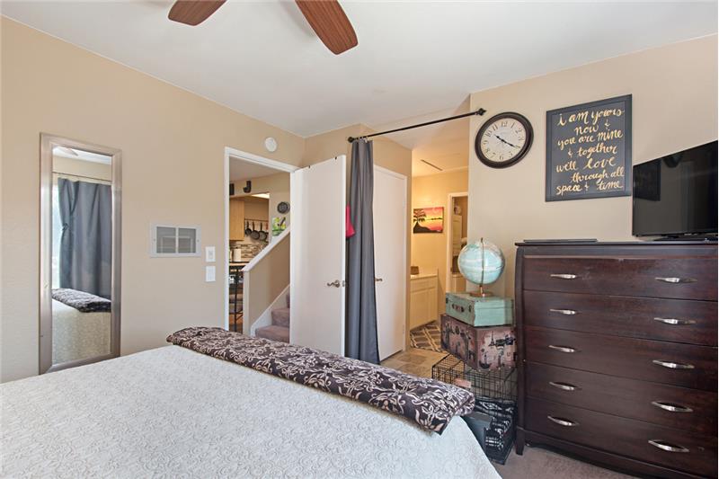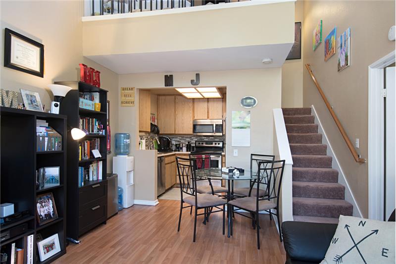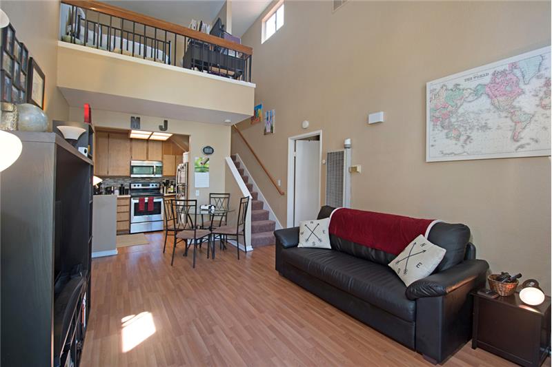 Upper end corner unit with canyon views. One bedroom + spacious loft. Bright and light with laminated wood flooring, upgraded carpet. Kitchen has glass block back splash, upgraded sink fixtures and stainless appliances. Inside stacked washer and dryer! Good sized living space and upper loft can be used as secondary bedroom or office. One assigned carport and plenty of secondary parking for guests. Private community pool and spa. Minutes to fabulous shopping, theaters and fine dining. UTC a great place to live.