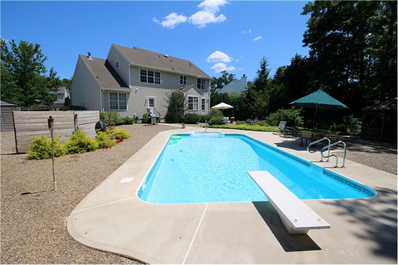 Elegant Colonial home located in desirable Waterford Community of Cedar Run. Wonderful neighborhood, centrally located close to ball fields, shopping and dining. Just minutes from Long Beach Island beaches. One of the largest lots in the subdivision, this low maintenance backyard includes an in-ground heated pool, gazebo and shed both with electric outlets and lights. 5-zone sprinkler system that runs on well water. Beautiful hardwood flooring throughout the living area. Owners have upgraded to a new kitchen and master bathroom since 2011. They've added new central air conditioning in 2