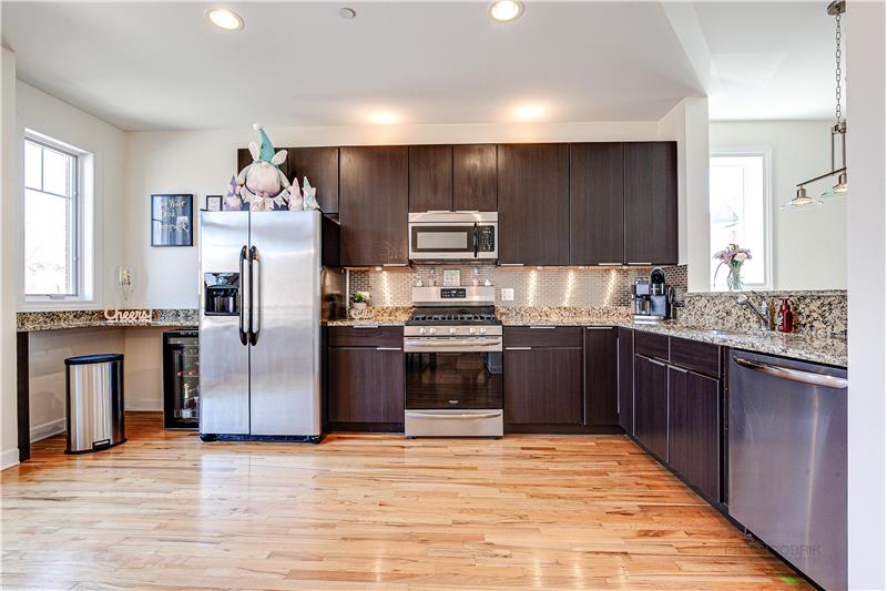 63 Northfield Ter, Wheeling IL 60090. Desirable end unit newer construction (2010) luxury townhome in Millbrook Pointe. 2,070 SF. All brick exterior, Pella windows, attached two car garage. 9 foot ceilings, recessed lighting, oak hardwood floors on main level, bay windows, two balconies. Neutral decor throughout. Lower level family room, recreation or office space. Open kitchen with granite countertops. Call for a showing today 773-987-8224.