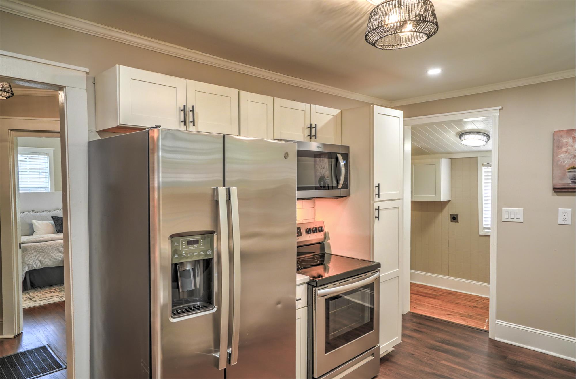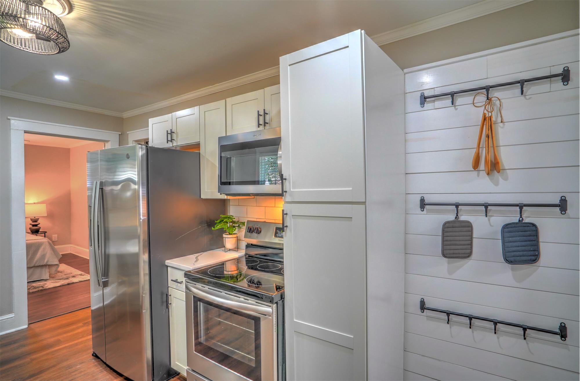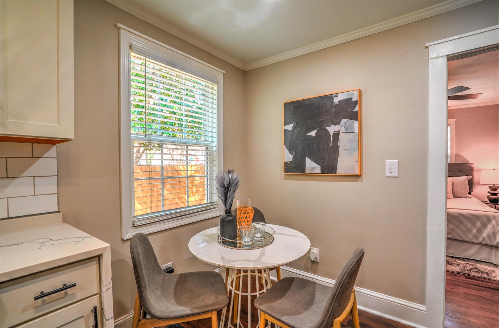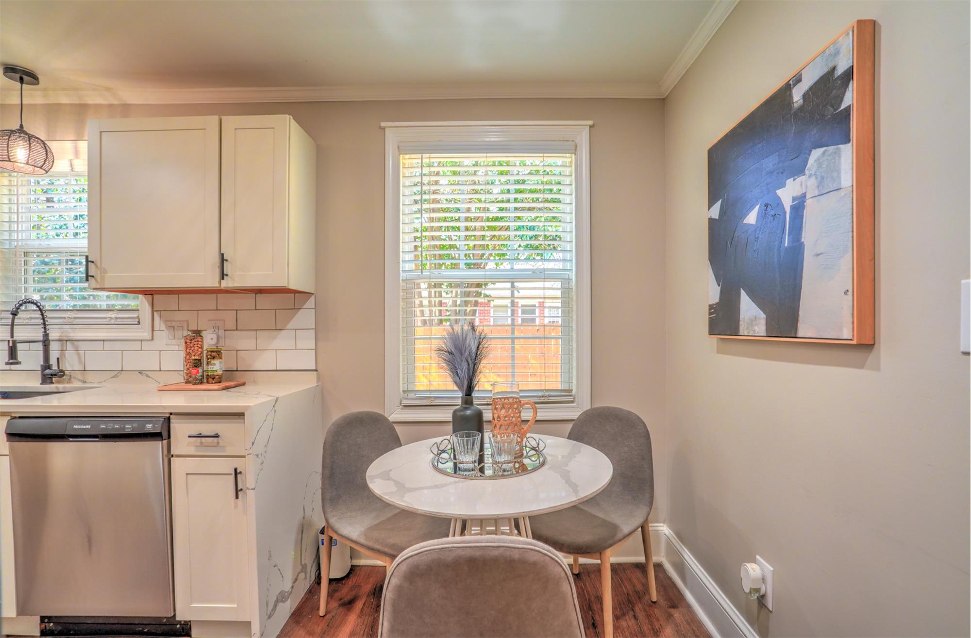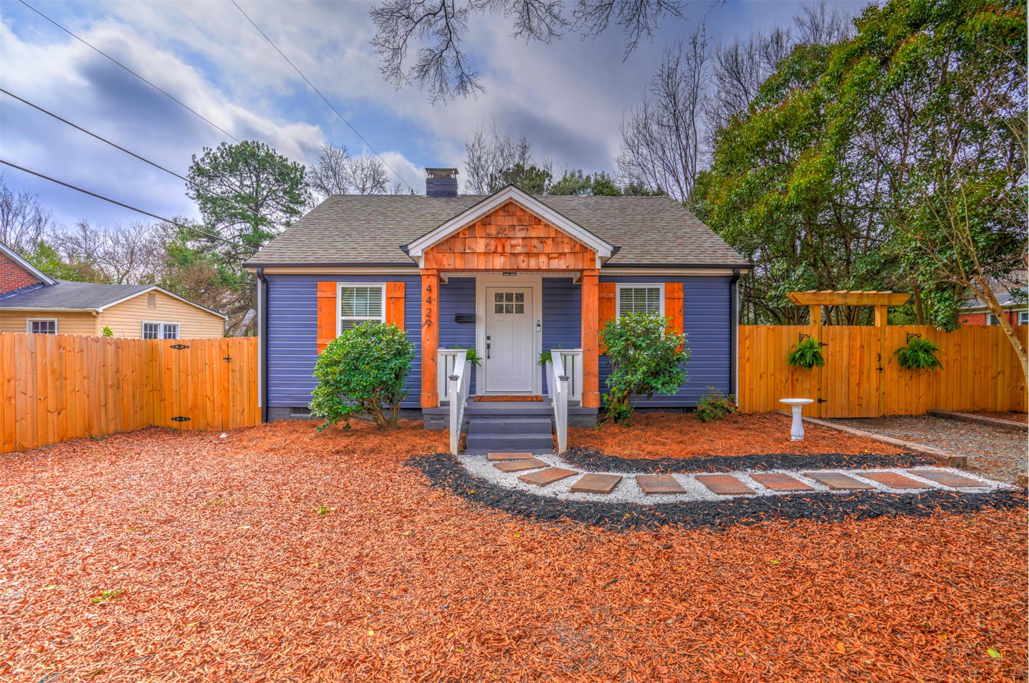 Welcome to this charming bungalow perfectly located just minutes from the energy of Uptown Charlotte, NC and the vibrant dining, breweries, and nightlife of South End. Nestled near the historic neighborhoods of Enderly Park and Wesley Heights, this home offers charm, comfort, and convenience in one of Charlottes growing areas. Inside, you'll find beautiful original hardwood floors, a bright open layout, and lighting and hardware that create a warm, welcoming atmosphere. The kitchen features modern cabinetry, quartz countertops, a stylish subway tile backsplash, and newer stainless appliances, making it both functional and attractive for everyday cooking or entertaining. The cozy living room with a brick and tilesurround fireplace adds character and a perfect space to unwind. Two spacious bedrooms with custom built-ins provide great storage, while the bathroom includes a vanity and enclosed shower with clean, practical finishes. A mudroom with washer and dryer connections adds convenience and additional utility space. Step outside onto the new rear deck overlooking a shaded, fully fenced backyard, ideal for relaxing evenings, pets, or entertaining friends. Additional highlights include a large attic for extra storage, a low-maintenance yard, and a quiet, friendly neighborhood settingall just a short drive from Charlottes main employment and entertainment districts. This charming bungalow offers classic character, comfortable living, and a prime location close to the heart of the city.