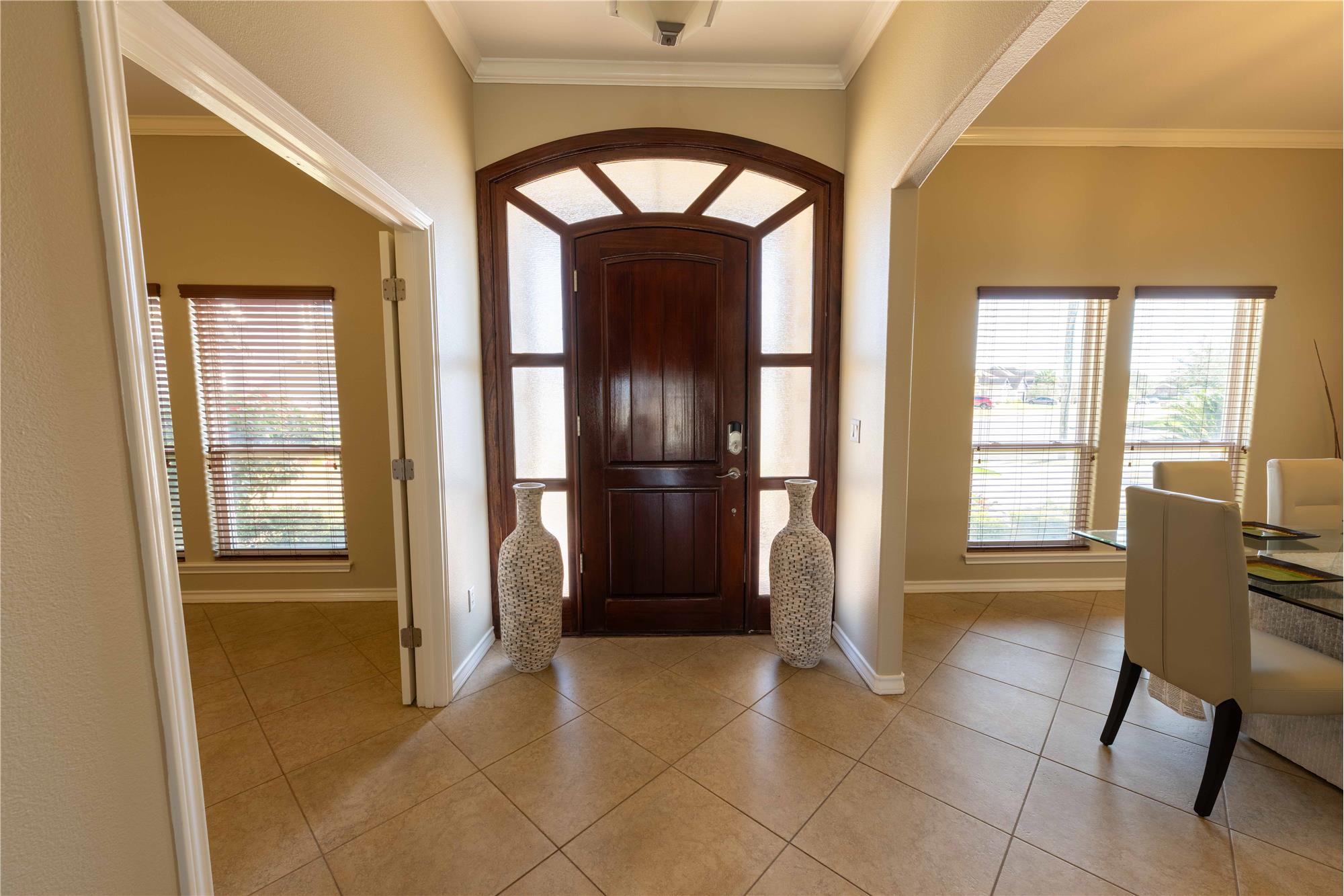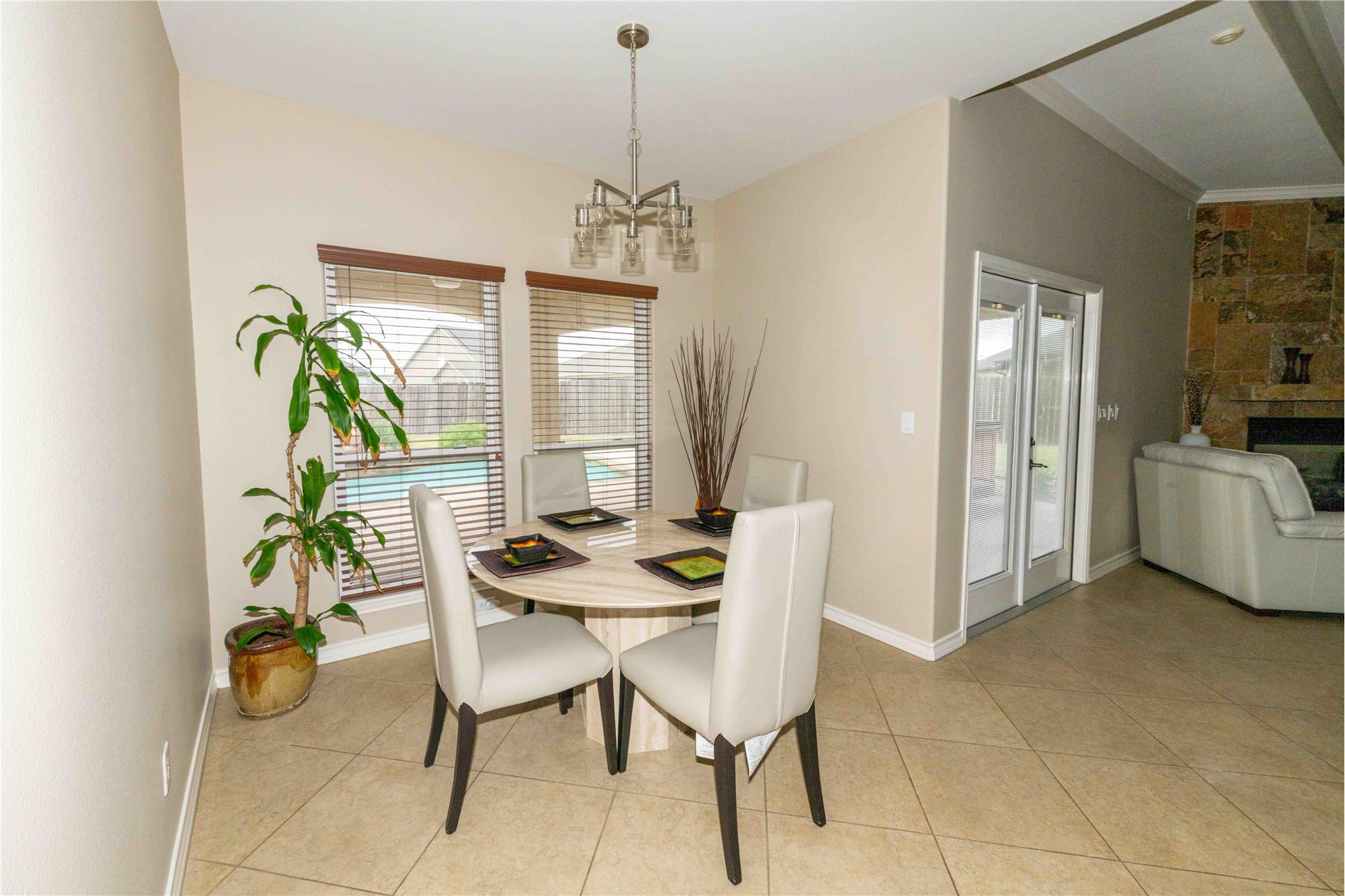 The kitchen has granite countertops, stainless steel appliances, a gas cooktop, built-in oven, microwave, pantry and island. Home also features a breakfast area and formal dining.
