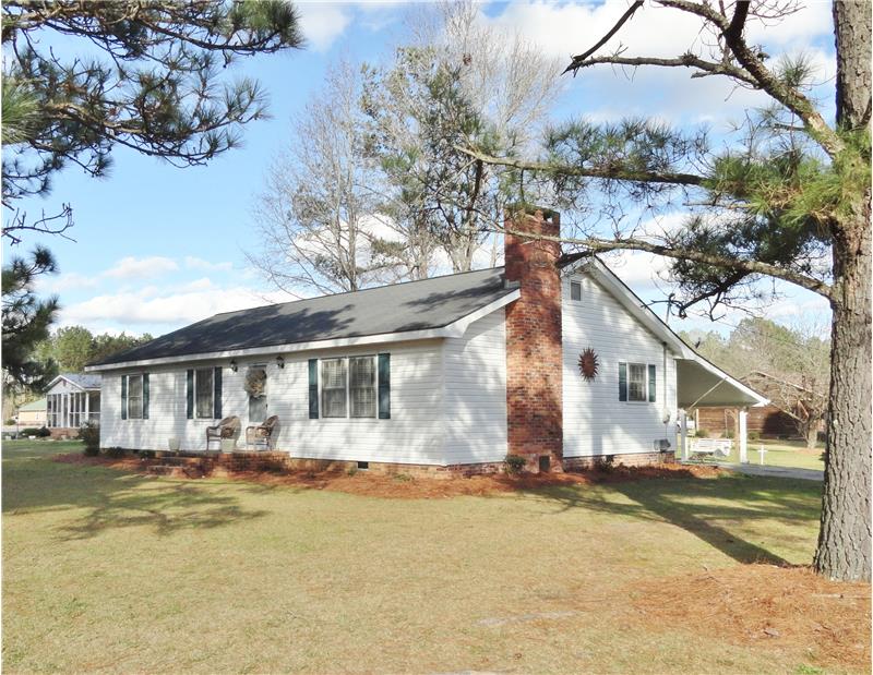 A MUST SEE! Very charming home offering huge family room with gas log fireplace and large bedrooms! Situated on beautiful corner lot just outside the city limits and located approximately 1 mile to all 3 schools! Spacious Kitchen and Dining Room with laminate hardwood floors! Updated Baths, Patio, Carport, Parking Pad, 12 x 12 Wired Storage Building with garage door! New carpet/pad and laminate hardwood flooring! New water heater! Lots of storage! 3 Ton/14-seer heat pump only 8 yrs old!
