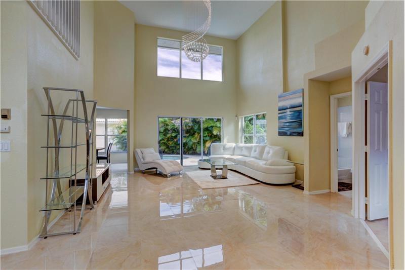 This luxury 5 bedrooms home welcome family & guests to an luxury and comfortable lifestyle. As you step into the foyer, you are greeted by a beautiful huge living room, 22 foot ceilings, amazing crystal chandeliers drop rainbow on a walls. Flooded with light from sliding glass doors and high windows. This home features a warm cozy kitchen and family/dining room, new ss appliences, new wood kitchen cabinets and granit,bar has wine coolers and racks. Kitchen has sitting area with TV. Please Call: Gillian Wilson (954) 439-4959.