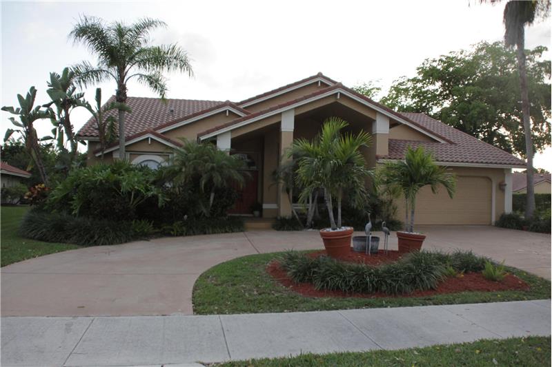 This home sweet home has so much to offer. From the circular driveway and large lot located on a corner, to the large extended patio and the lovely tranquil pool. Perfect for entertaining! The open kitchen has granite counters, lots of cabinetry, a desk and a large eat in area. Plus there are stainless steel appliances. There is a half bathroom besides the 2 full ones. It is a spit bedroom plan with 3 bedrooms with a pocket door added for extra privacy. It has a built in bar plus beautiful built ins in the living and family rooms. Please Call: Gillian Wilson (954) 439-4959.