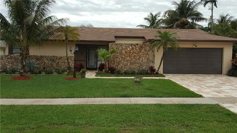 Recently refreshed 3 Bedroom/2 Bath/2 Car Garage home with covered entryway, New Roof as of October 2015, New Interior Paint, New Carpeting, New Driveway and Patio Stamping, Large Screened Patio and Private Pool. Eat-In space and Breakfast bar seating in kitchen, wet bar, multiple access points to patio and pool, in-house alarm system owned (requires service connection )and manicured landscaping. Low HOA dues. Must see today. Please Call: Gillian Wilson (954) 439-4959.