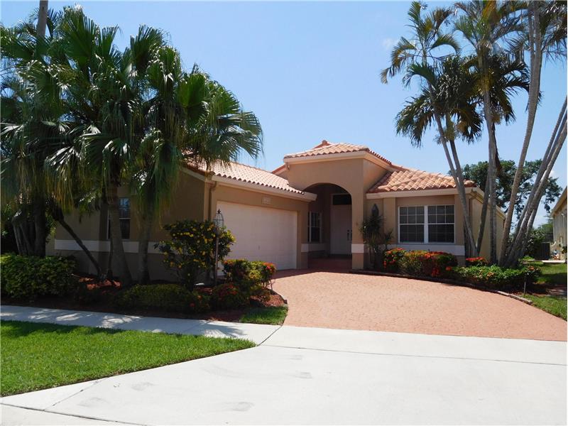 Beautifully updated 3BR/2BA Spanish Mediterranean Aspen model home with panoramic golf course views located in a gated community. Interior features double entry doors, vaulted ceilings, wall-to-wall carpeting and ceramic tiles. Great room concept in living area. Bright & updated kitchen with white cabinets & stainless refrigerator & microwave. Master Bedroom features walk-in closet & sliding glass door. Master Bath features dual sinks, Roman tub and separate shower stall. Screened covered rear patio. Hurricane rated 2 car garage door. Please Call: Gillian Wilson (954) 439-4959.