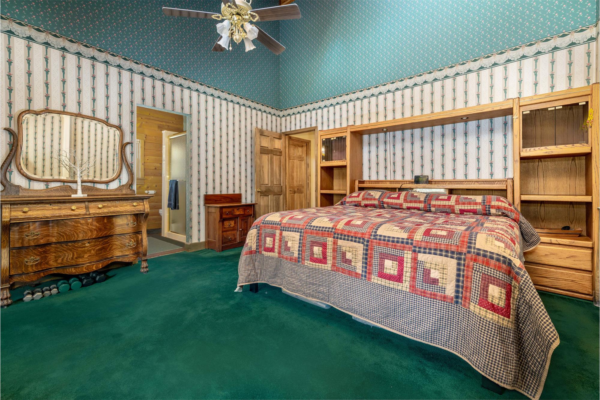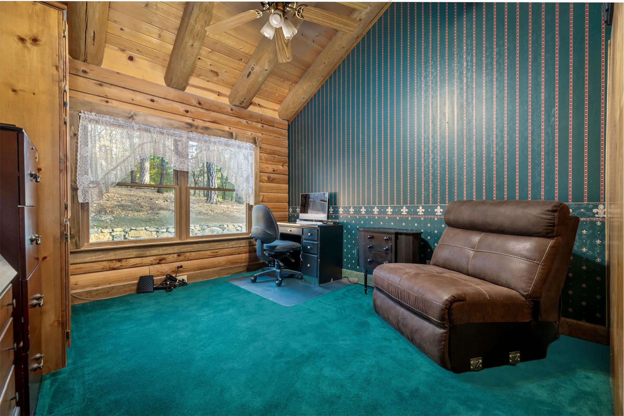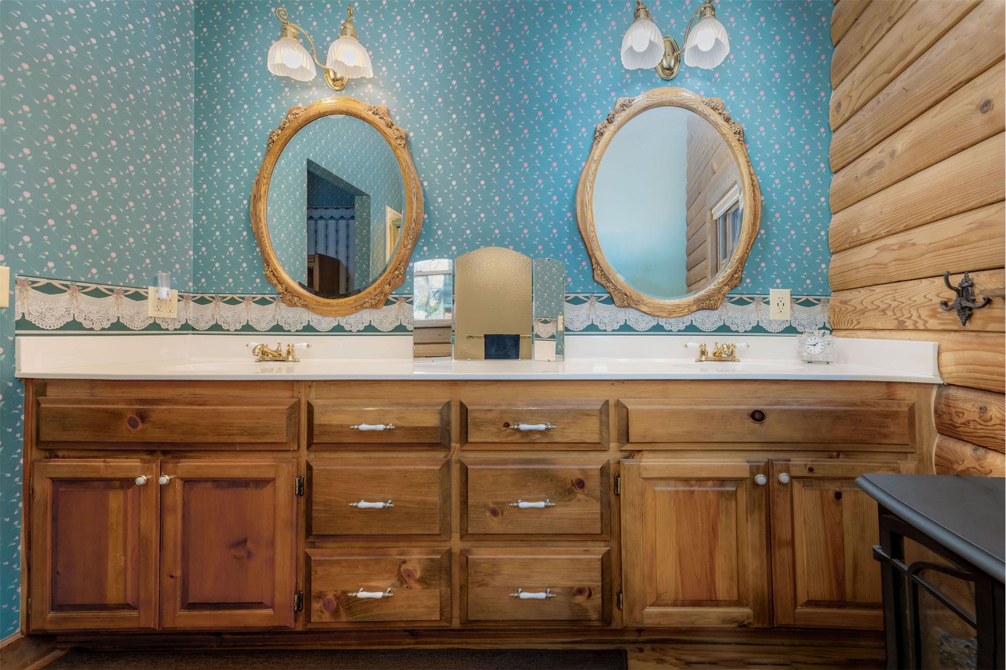 As soon as you step inside, you’ll be mesmerized by the soaring cathedral ceilings that brighten the space and create a feeling of openness and joy. Sunlight pours in from large windows, casting a warm glow on the rich wooden accents of this log-style masterpiece and massive rock fireplace. Every corner invites you to relax and unwind.