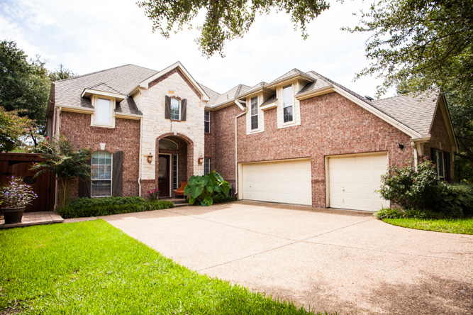 This magnificent home sits on a culdesac within a quiet gated community close to amenities in GCISD, surrounded by mature trees,ponds & fountains. Serene backyard offers huge flagstone patio partially covered in cedar & metal. Stone pathways, herb gardens & planter beds line the side yards. Light & bright open concept features wood & slate floors, custom paint, copper & glass fireplace, & wall of windows. Downstairs offers and exquisite master suite, study, mother in law suite with full bath, & formal living & dining. Upstairs boasts a luxurious projection theater room with wet bar, festive su