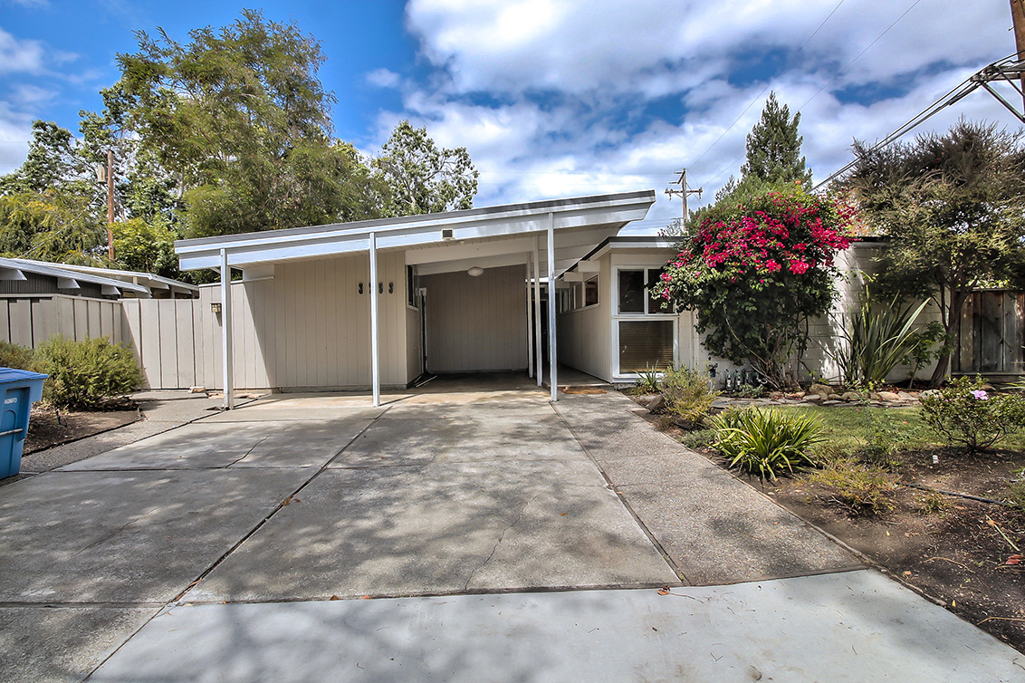 This delightful home is located on a peaceful circular street. It is a short walk away from Mitchell Park, Mitchell Park Library, Charleston Shopping Center and the shops on El Camino Way. Caltrain is 1.7 miles away. Wonderful open floor plan features a spacious living room adjacent to the dining room gives you a cheerful open room for entertaining or family activities. All three bedrooms have natural light and are down a hallway on the opposite side of the house from the living and dining areas. It has a spacious private master bedroom suite with access to the side yard.