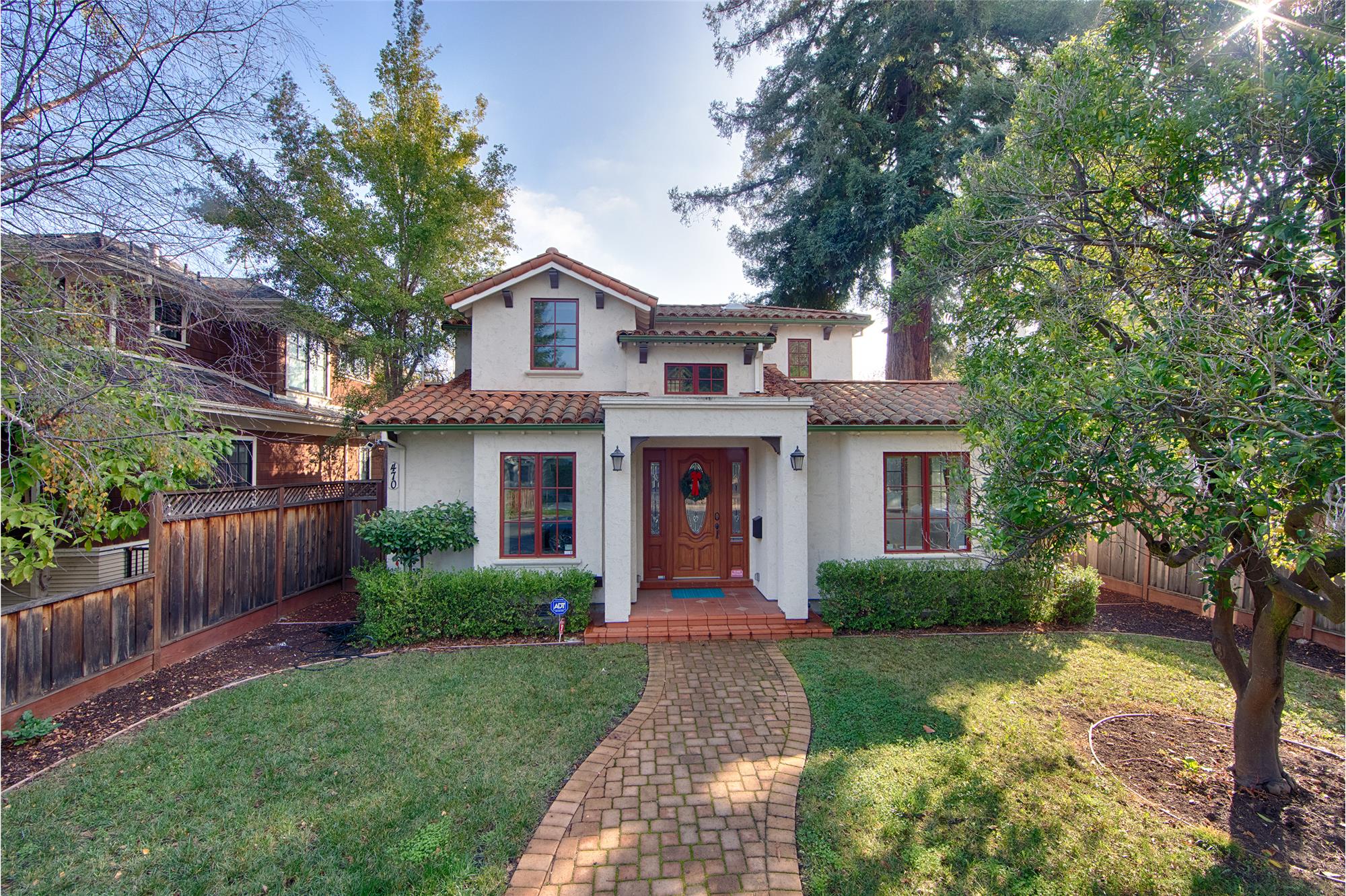 This beautiful newer two story, four bedroom, 3.5 bath, home is in a prime downtown Palo Alto location. A classic timeless design with modern luxury features will make you, your family, and your guests feel like you have walked into a delightful luxurious home that will be cherished forever. An oval leaded glass paneled hardwood door with two leaded glass sidelights welcomes you to this home. The foyer greets you with a modern crystal chandelier hanging from the high ceiling, on the right side, an arched passageway and arched window open to the spacious living room, on the left is a room wh