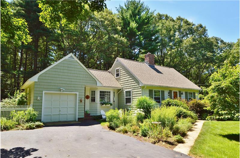 Welcome Home to this wonderfully maintained & updated Cape in walking distance to the highly sought after Keller/Sullivan school district. Warm, inviting décor throughout. Efficient kitchen (updated in 09) w/ SS appliances (all included), quartz counters, & peninsula for stools. DR w/ corner built in hutch opens up to a cozy family room w/ gas fireplace that provides warmth and atmosphere. Full bath & 2 bdrms complete the 1st floor. 2 large bedrooms and renovated 1/2 bath (2007) upstairs. Need additional space? Half the lower level has been finished and is perfect as a play room or exercise area &other half offers plenty of storage & work area. Enjoy the warmer months on the large mahogany deck or flagstone patio overlooking the absolutely beautiful yard abutting the woods for added privacy. Lots of mature plantings & plush perennial gardens. Additional updates & bonuses include roof (07), boiler (09), 6 panel doors (07), Anderson slider, Central Air, 1 car garage & more.