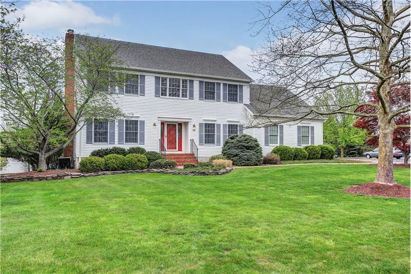 Fall in love with this outstanding property nestled on a secluded lot in Hillsborough's most popular community, Country Classics. This pristine, neutrally appointed home highlights a two-story foyer, hardwood floors, nine foot ceilings and crisp white moldings. You'll especially admire the updated kitchen offering maple cabinets, granite counters, stainless steel appliances and built-in desk/beverage center. Open to the kitchen is a captivating family room featuring a 10' ceiling, recessed lighting and cozy wood burning fireplace. You can access your newly refinished two-tier deck and backyard from the family room or kitchen. More conveniences include a first floor laundry room and three room finished basement, which also provides plenty of storage. Discover oak treads and a new carpet runner on the front staircase, as well as brand new carpeting in all four bedrooms. The master suite features an expansive walk-in closet and double door entry to a private bathroom with granite counters, dual sink vanity, soaking tub, stall shower & linen closet. More amenities include french doors in the living room, crown/chair moldings in the formal dining room, NEW garage doors, NEW blacktop driveway with belgium block curbing, exterior lighting, lawn irrigation, paver walkway & security system. All this, plus your 2.5 car garage is equipped with a spacious alcove---perfect to house your lawn tools, sporting equipment, bicycles... This fantastic home is located near Amsterdam School, playgrounds & shopping, plus just a short commute to the train & major highways. Make your move today!