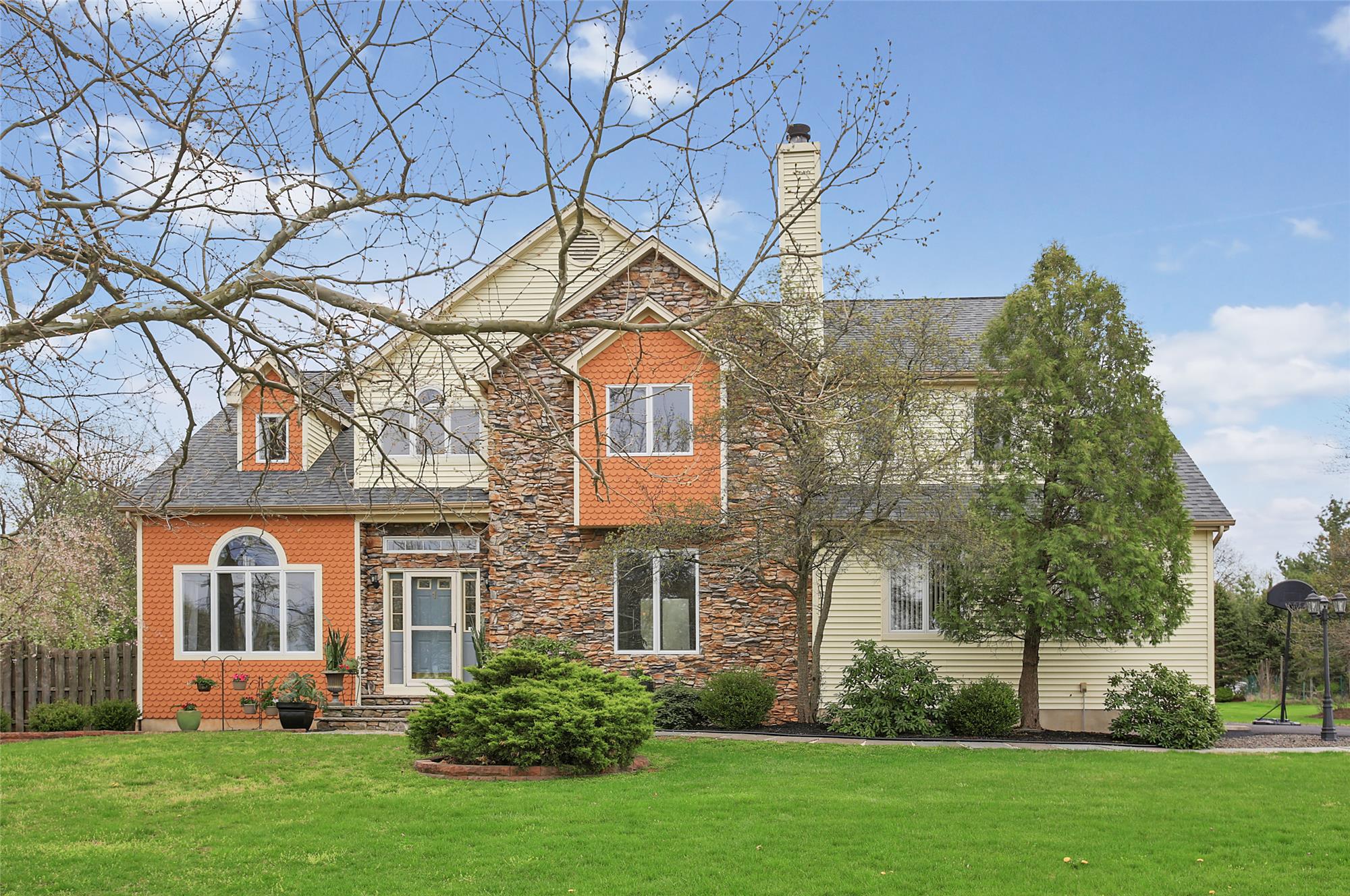 This wonderfully updated home is nestled on a .85 acre corner lot in desirable Pleasantview Farms. The entire house is light and bright, showcasing high ceilings, recessed lighting, crisp white moldings and oversized windows throughout. Discover a grand two-story foyer, oak treads on the staircase, cathedral ceiling in the living room and exquisite woodburning fireplace in the family room. A modernized "open concept" kitchen features beautiful Thomasville maple cabinets, granite counters, center island with seating, pendant lights and roomy dining area. A remodeled powder room and laundry room complete the first level. Upstairs you'll find four spacious bedrooms highlighting a master suite with tray ceiling, crown molding, two large closets (1 walk-in) and en suite bathroom providing dual sinks, body jet shower & jacuzzi tub. The hallway bathroom is equipped with a double sink vanity and immaculate tub/shower combination. Experience fun times or simply relax in your sprawling backyard featuring a TREX deck, above ground pool, privacy fence, fruit trees, vegetable garden and shed. More amenities include a new roof, intercom, security system, front lawn irrigation, generator hook-up and dimmer light switches. There's also a full basement and two car garage with convenient automatic openers. All window treatments, two refrigerators, plus the washer and dryer remain. This property is centrally located--near schools, town and shopping with easy access to highways and NYC train. MAKE YOUR MOVE TODAY!!