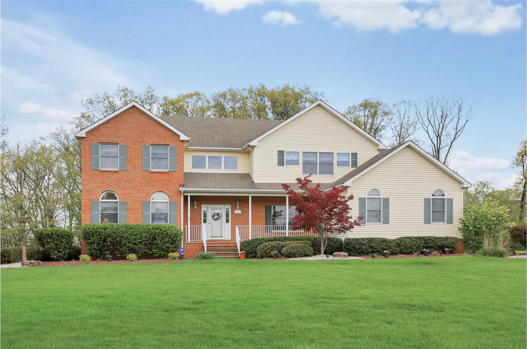 This pristine center hall Colonial is nestled on a private one acre lot in upscale Laureldale Estates. Greet family and friends in the dramatic two story foyer featuring hardwood floors, brilliant chandelier and split staircase. Discover high ceilings, crisp white mouldings and a plethora of windows, making this home light and bright throughout. A spacious kitchen features granite countertops, convenient breakfast bar and roomy dining area overlooking a serene backyard. The enormous family room highlights a wood burning fireplace with marble surround and convenient butler's pantry. You'll also find a bedroom/office with a private full bathroom on the FIRST FLOOR. Upstairs provides four more bedrooms---including the master bedroom suite spotlighting a tray ceiling, two walk-in closets, storage area and en suite bathroom with dual sinks, jetted tub and stall shower. There's an oversized two car garage and full basement with high ceilings--perfect for finishing! You'll adore the fenced-in backyard, boasting a TREX deck, patio and sizable shed. More amenities include a chandelier lift, 2 zone heat/air and security system. All this, plus top rated Hillsborough Schools and a fantastic location---near town and in close proximity to many parks, major highways & NYC train. This is the home you've been waiting for!