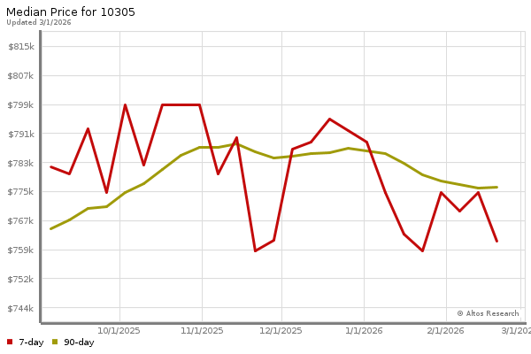 The chart below shows the combined 7 days and 90 days median price trends for zip code