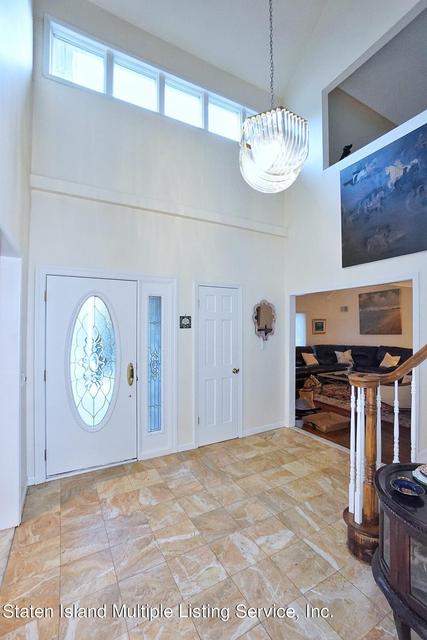 Situated at the base of Lighthouse Hill, on a quiet and private block facing the Bluebelt, this Center Hall Colonial with a circular driveway offers space, privacy, and flexibility, making it ideal for family or multigenerational living. Set on a 7,000 sq ft lot, this two-story, single-family residence offers approximately 2,675 sq ft of interior living space, along with a full finished basement. The traditional layout provides excellent flow and a clear separation of living and sleeping areas. The main level features a classic center hall design with a two-story foyer, formal living and dining rooms, and an eat-in kitchen. The home retains much of its original character, presenting a great opportunity for buyers to customize and update over time while enjoying a layout well-suited for everyday living and family gatherings. Upstairs are four generously sized bedrooms, including a spacious primary suite. The primary suite features a full bathroom with a tub and separate stand-up shower, as well as an extra-large loft area currently being used as an office, making it ideal for a home office, nursery, sitting area, or private retreat. The finished basement adds significant versatility and value, offering a 3/4 bathroom, an open living area, and two additional rooms. The exterior provides both privacy and practicality. A circular driveway allows for ample parking and easy access, while the functional backyard includes a deck and swimming pool, creating space for gatherings, barbecues, and relaxed outdoor enjoyment. The outdoor areas offer plenty of opportunities for future personalization. Located on a peaceful, low traffic block with added privacy and natural surroundings, this home delivers size, layout, and locationan excellent opportunity for buyers seeking a long-term home with flexibility and potential in one of Staten Island's most desireable areas. Please call Red Door Realty at #718-987-3667.