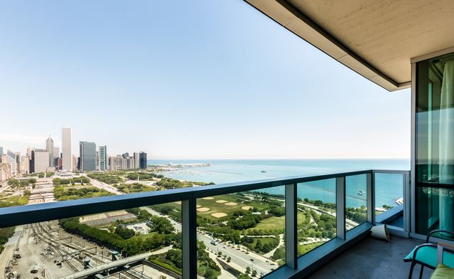 Museum Park, Soldier Field & Chicago's Skyline through 10ft floor to