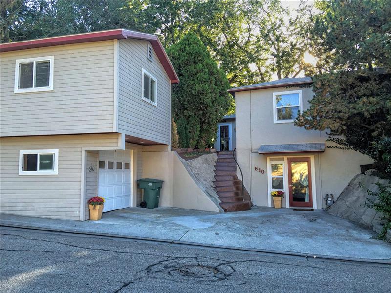 Hillside villa nestled in the trees with spectacular views from the shaded deck. Completely remodeled, this is a gorgeous home with fantastic scenery out every window. Remodeled kitchen with top of the line cabinets, an island and a large pantry. Oak & tile flooring and new carpets throughout. A very large master bedroom with a huge jetted tub. New paint inside and out, a new 7k furnace system, new 5k auto sprinkler system, lots of fresh landscaping and new finished concrete steps and patio. Complete furniture package is negotiable.
