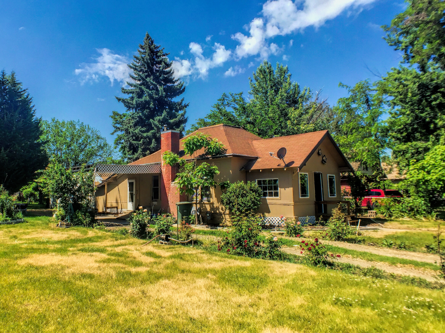 Large shaded property in town. 20x22 outbuilding plus a storage shed. Room for all your critters and a large garden (bring your tractor). Home has been partially remodeled with a nice kitchen and many new windows. Plenty of irrigation water for the large lawn and all the roses.