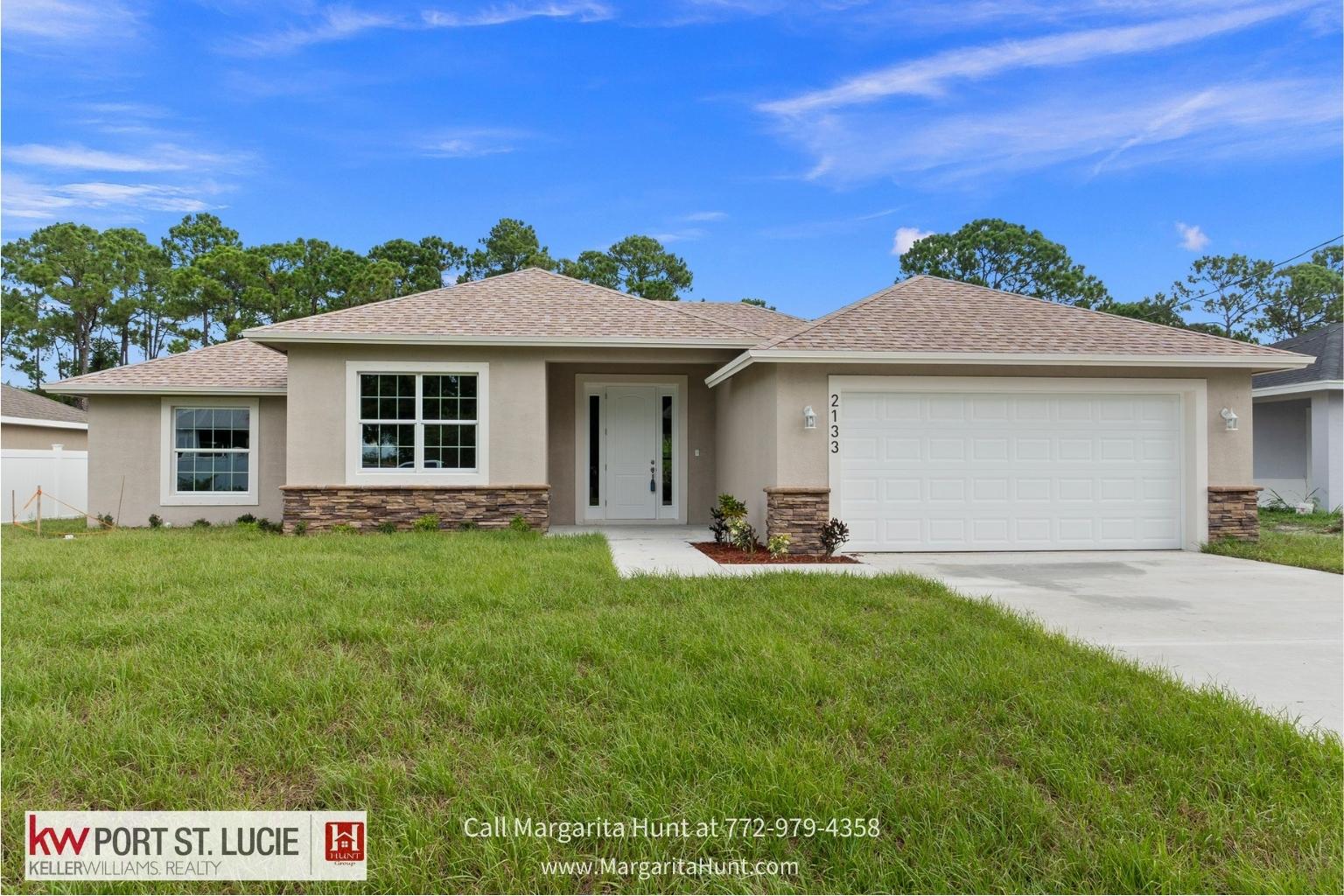 A new construction home set in a prime location Featuring 4 bedrooms, 2 bathrooms, and 1900 square feet of living space, this ranch-style Saint Lucie FL home offers a perfect blend of convenience, fun, privacy and space! The living areas of the home are all generously-spaced with large windows and beautiful tiles that give the home an airy and cozy vibe. This one-of-a-kind home wont last long in the market so make it yours today for only $489,900! Call Margarita Hunt of Keller Williams Realty of PSL at 772-979-4358 to schedule your showing.