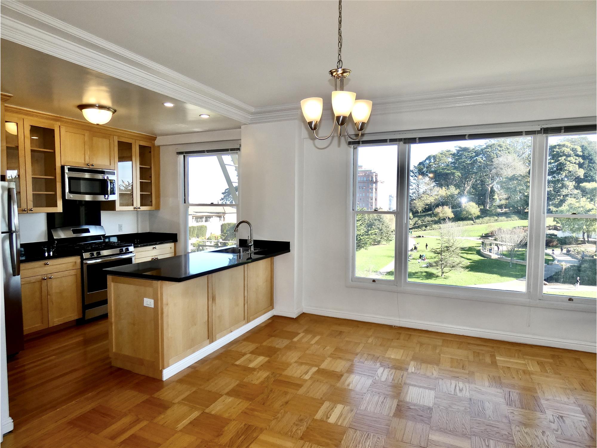RENT CONTROLLED, ELEGANT BUILDING *Owned and managed by boutique, family owned company Charming, remodeled, airy 1br across from Lafayette park. Beautiful, Art Deco building. Remodeled kitchen with custom-made cabinets, Granite counters, high end fixtures and Stainless steel appliances. Ample storage space. Open plan, spacious living/dining/kitchen area WITH PARK VIEW Nice size bedroom with wall length closet. Multiple closets Remodeled, marble bathroom with separate shower and bathtub Hardwood PARQUET floors throughout