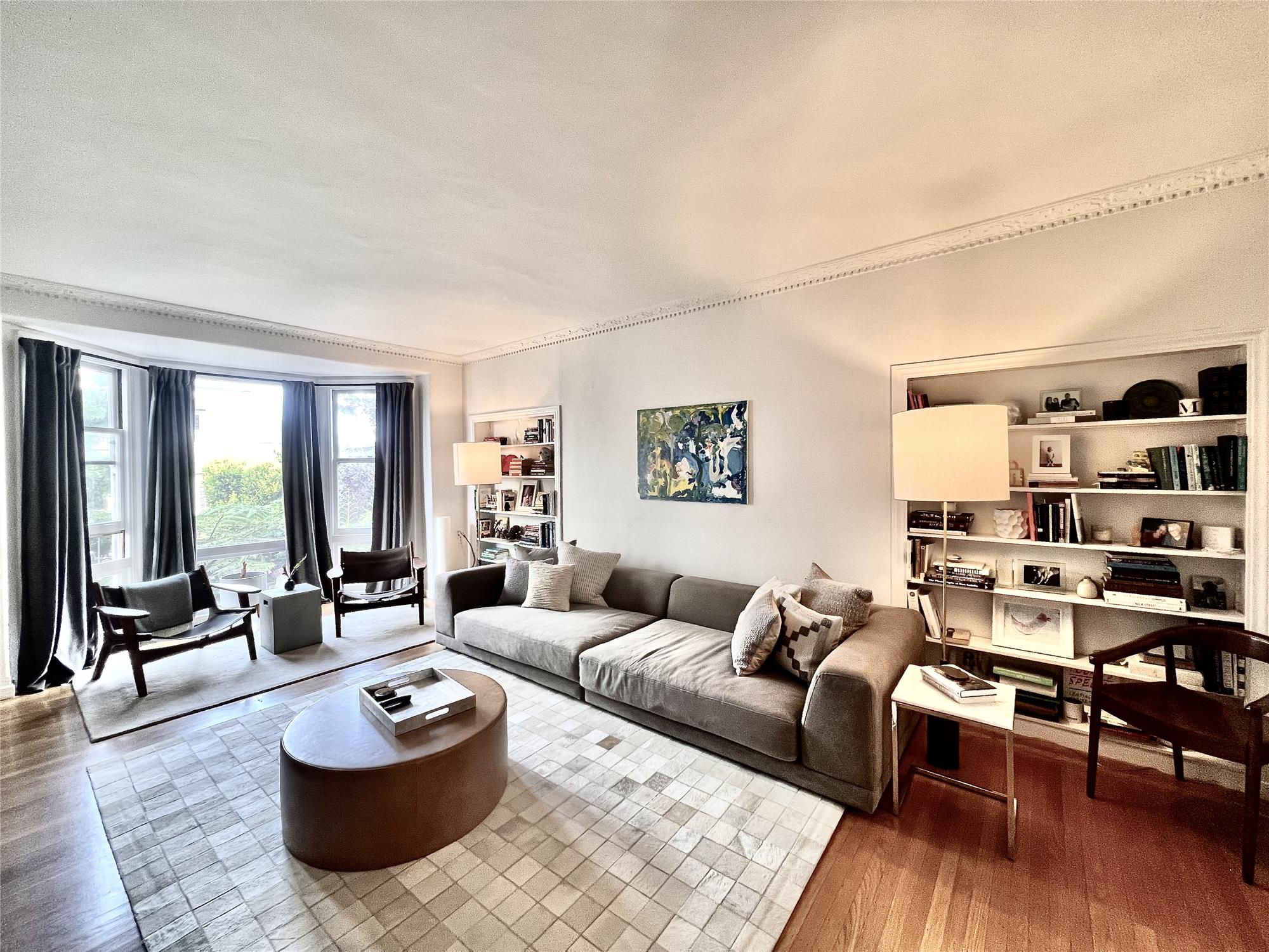 Magnificent hand crafted, plaster moldings throughout. Devine sized rooms with tall ceilings. Huge windows in all 7 rooms of the apartment, which includes a massive living room with glorious, high ceilings; a formal open dining room; open plan HUGE remodeled, marble kitchen with eat up counter. Perfect for entertaining! Wet Bar. 3 well separated bedrooms. REMODELED, MARBLE Kitchen has STAINLESS GAS STOVE, LG FRIG. MICROWAVE AND DISHWASHER. Abundant walk in closets. Ensuite Washer/Dryer as well as additional machines in laundry room.