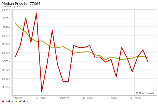 The chart below shows the combined 7 days and 90 days median price trends for zip code