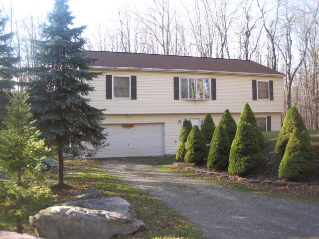 THIS HOUSE IS PRICED TO SELL!!! METICULOUSLY MAINTAINED, LOCATED IN AN AMENITY FILLED GATED COMMUNITY OFFERING A 125 ACRE LAKE WITH ALL THE BELLS & WHISTLES. THIS 3 BEDROOM, 2 FULL BATH HOME HAS A TWO CAR ATTACHED GARAGE, A DECK OVER LOOKING NOTHING BUT PRIVACY, PRIVACY & MORE PRIVACY. FINISHED FAMILY ROOM W/FREE STANDING FIREPLACE PERFECT SETTING FOR YOUR VACATION/PRIMARY OR RETIREMENT HOME. 4 MILES FROM RT. 380 AND 8 MILES TO RT. 84. CONVEINENT LOCATION YET NESTLED IN THE WOODS. DON’T MISS THIS ONE!!!!