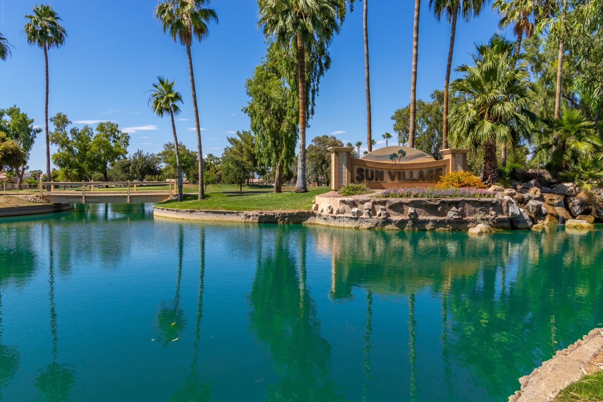 Sun Village is a 55+ Gated, Resort Style Community. Enjoy the 18 hole par 3 golf course, gigantic heated pool & spa, pickleball, tennis, fitness gym, woodshop, billiards, onsite entertainment in our ball room and onsite restaurant!Sun Village, is a gated, security guarded, age 55+, community, in the city of Surprise, Arizona. This small community is made up of just under 1400 homes and condominiums. The Sun Village Community has an 18 hole, par three "no-"riding" golf course, an heated swimming pool and spa, tennis, pickle ball and shuffleboard courts, horseshoe pits, an exercise room, a billiards room, sewing and crafts rooms, and a ballroom where national and international entertainment can be enjoyed!