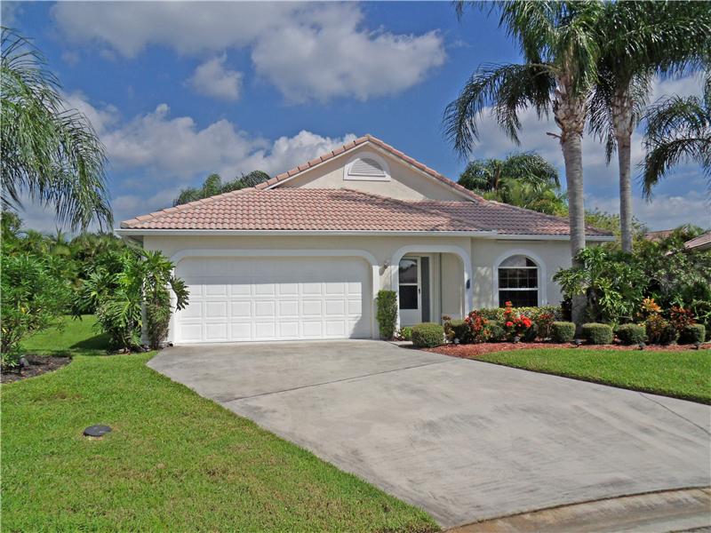 Move in to this charming 3 Bedroom, 2 Bath with 2 car garage tomorrow. Spacious open plan with eat in kitchen and split bedrooms. Solid CBS construction with barrel tile roof and accordion hurricane shutters throughout. Cul-de-sac location with quiet and private yard. Screened patio. This gated community features community pools, tennis courts and beautiful emerald lakes. Located close to shopping, restaurants, medical facilities and the marinas of Manatee pocket in Stuart. Easy access to I-95 for commuters as well. Low HOA fees include landscaping. An ideal winter getaway with minimal maintenance required or the perfect full time home to enjoy your carefree Florida lifestyle. All ages are welcome and this is a pet friendly community.
